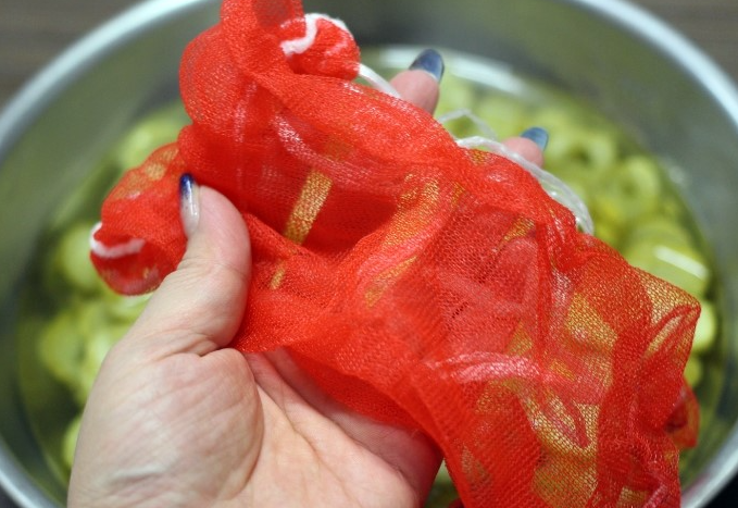 양념용 육수를 끓일 때 편하다고 빨간 양파망이나 저가 합성망에 재료를 담는 경우가 많습니다.